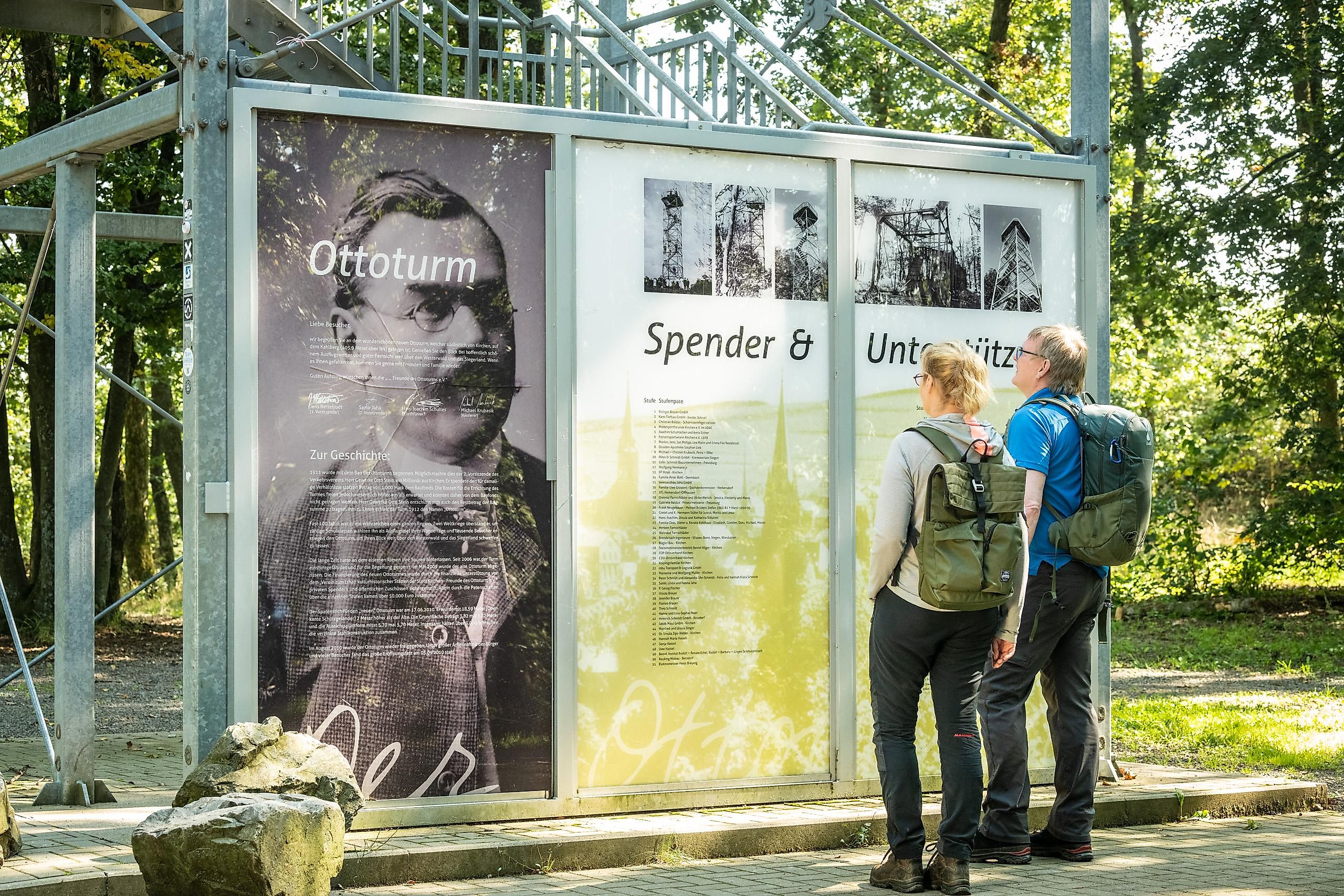Der beliebte und knapp 19 m hohe Ottoturm oberhalb der Stadt Kirchen (Sieg) im Druiden.Hexen.Siegerland wurde gleich zweimal errichtet, einmal bereits im Jahre 1911 und nochmals komplett neu knapp 100 Jahre später. Hier von der Höhe des Kahlbergs genießen wir den wunderschönen "Rundum-Blick" ins Siegtal, zur Freusburg und bis zu den Höhen des Westerwaldes. Zahlreiche Wanderwege, wie der Druidensteig, Natursteig Sieg, Ottoturm- und Druidenwanderweg etc. führen unmittelbar am Turm vorbei.