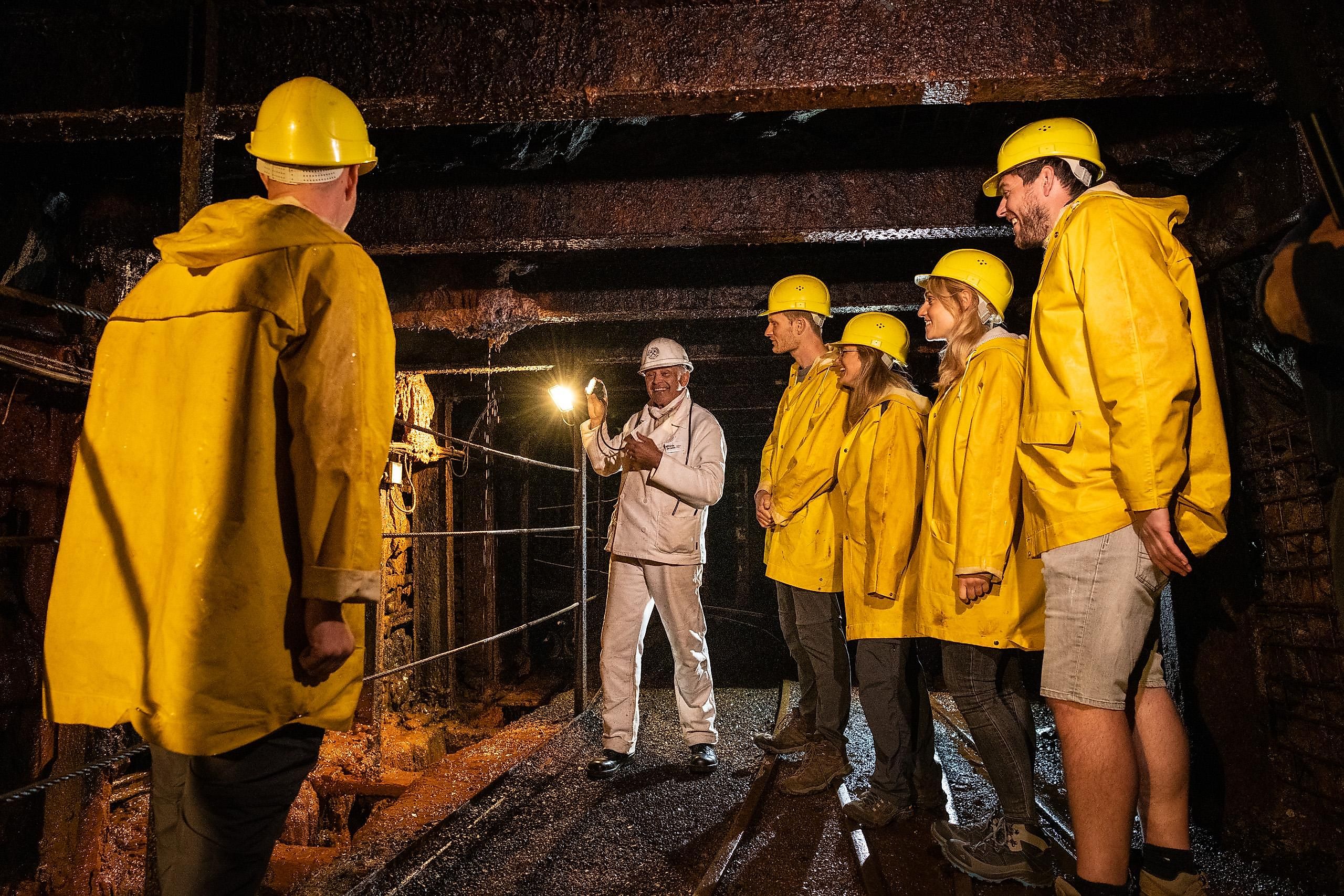 Im Bergwerk sind es max. 10 °C, daher wird warme Kleidung empfohlen.