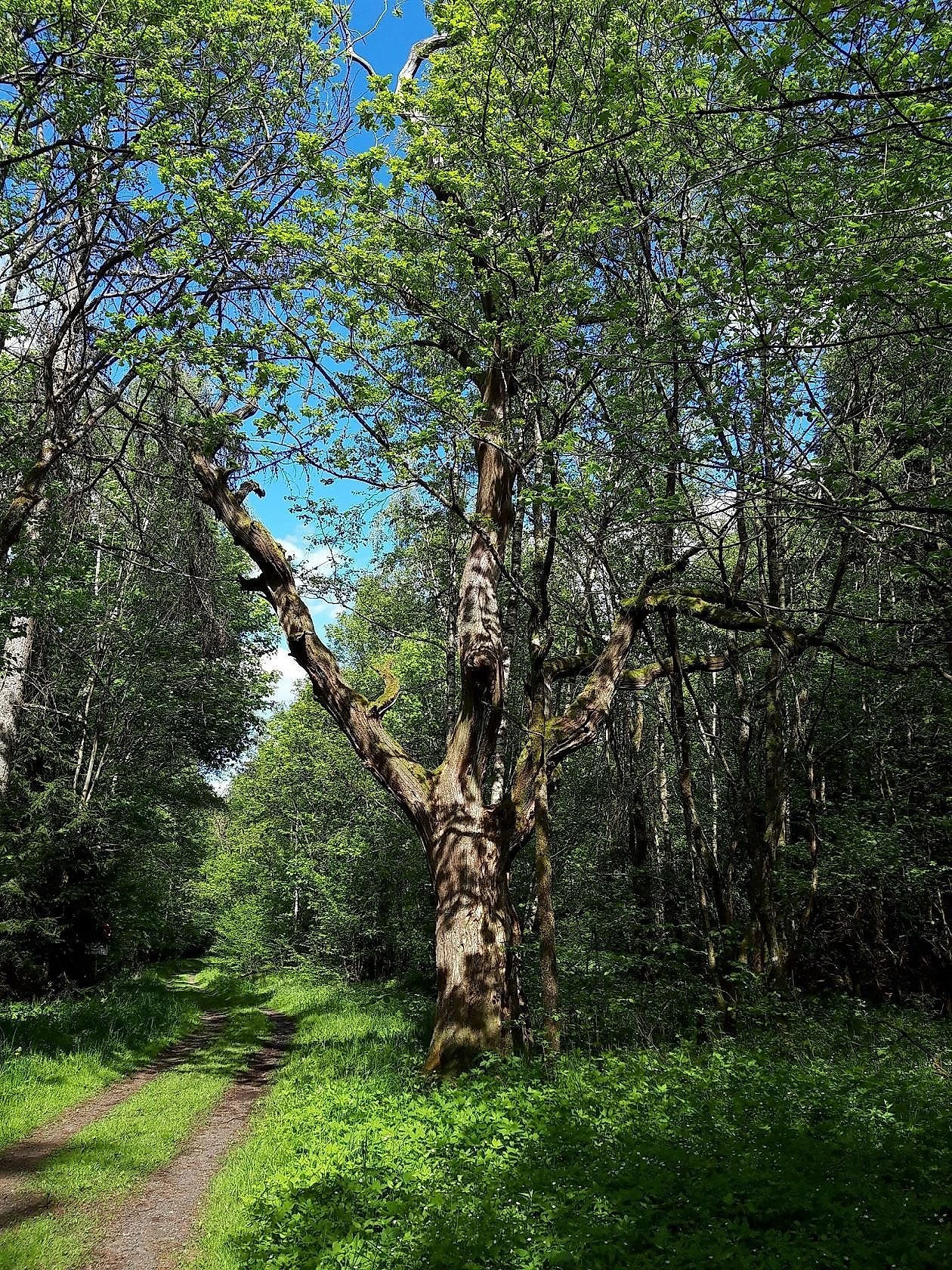 Die knorrige Hexeneiche von Elkenroth steht sagenumwoben direkt am Druidensteig.