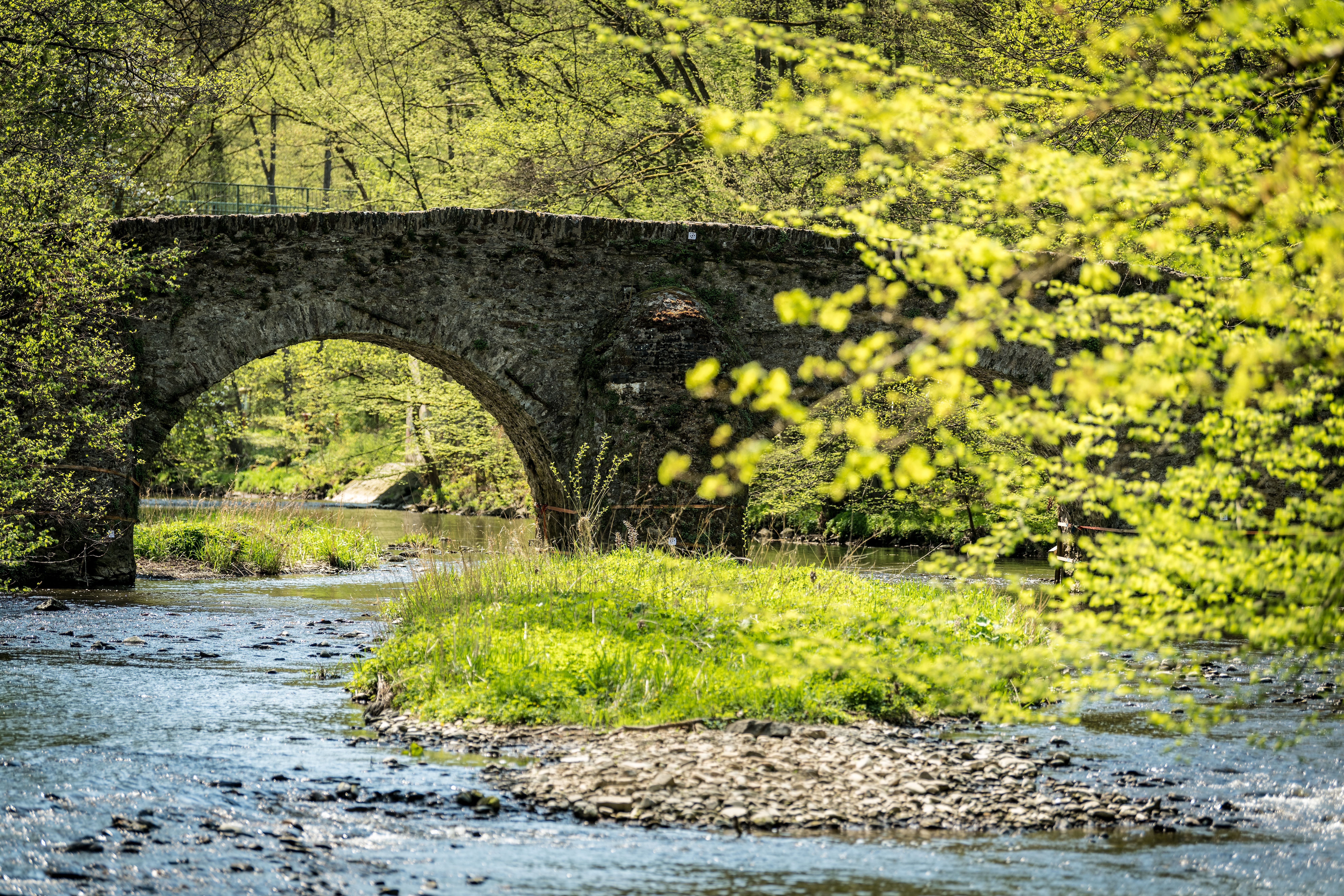 Wir beginnen unseren Spaziergang an der Zisterzienserabtei Marienstatt. Von dort aus gehen wir in Richtung der Großen Nister, die wir an der historischen Nisterbrücke überqueren. Weiter geht es rechts rein in den Auenwald. Im Auenwald folgen wir dem Lauf der Großen Nister, bis wir an das aus Naturstein gefertigte Wehr kommen. Der Weg führt uns an einer Lehmgrube vorbei, wo eine leichte Vertiefung im Bodenrelief auf den ehemaligen Lehmabbau hinweist. Nach einem kurzen Anstieg haben wir einen tollen Ausblick in das Tal der Großen Nister und die Kroppacher Schweiz. Kurz vor dem Ende unseres Spaziergangs kommen wir am Felsenstübchen vorbei, wo einst zwei Burgen standen.