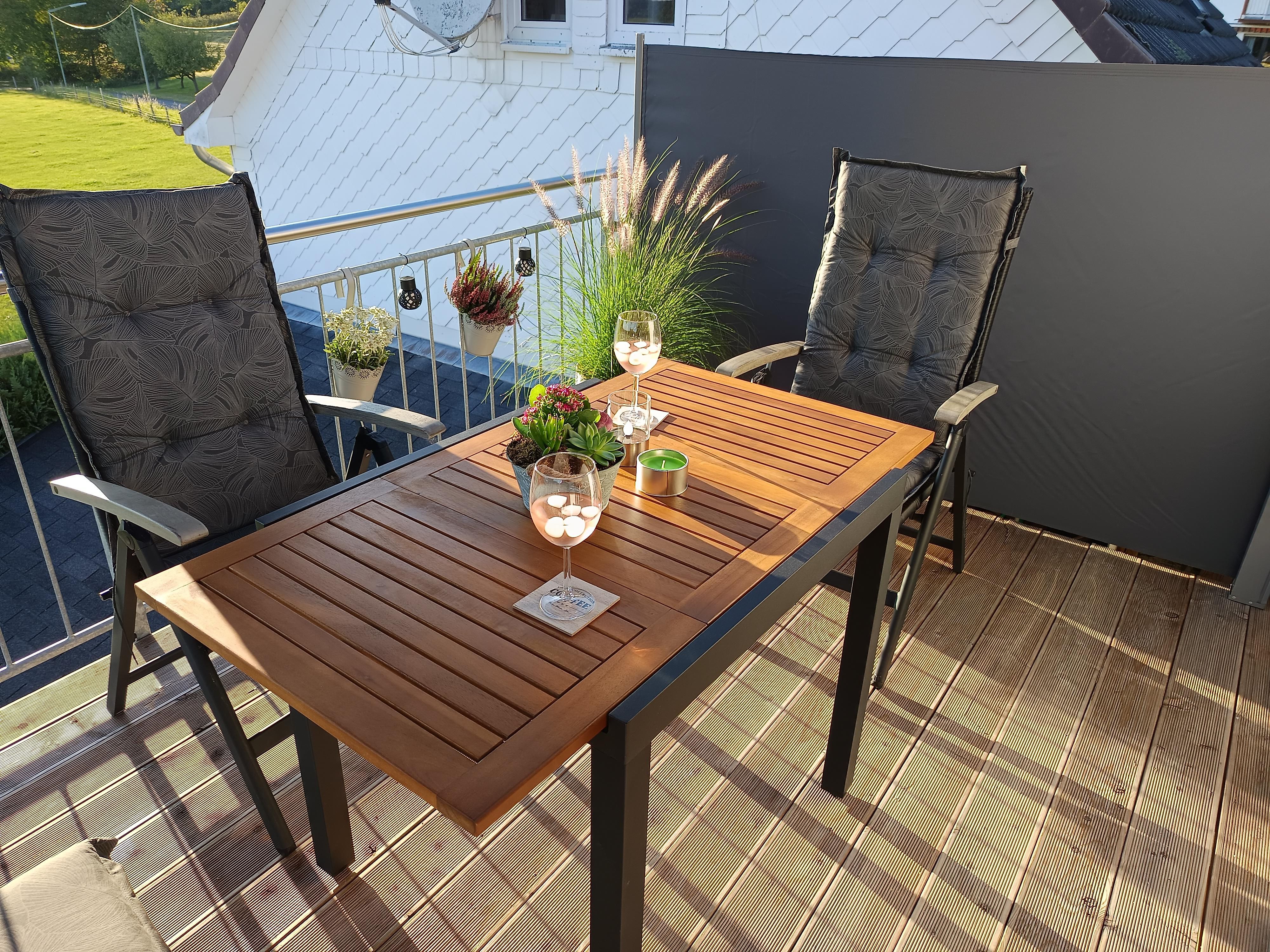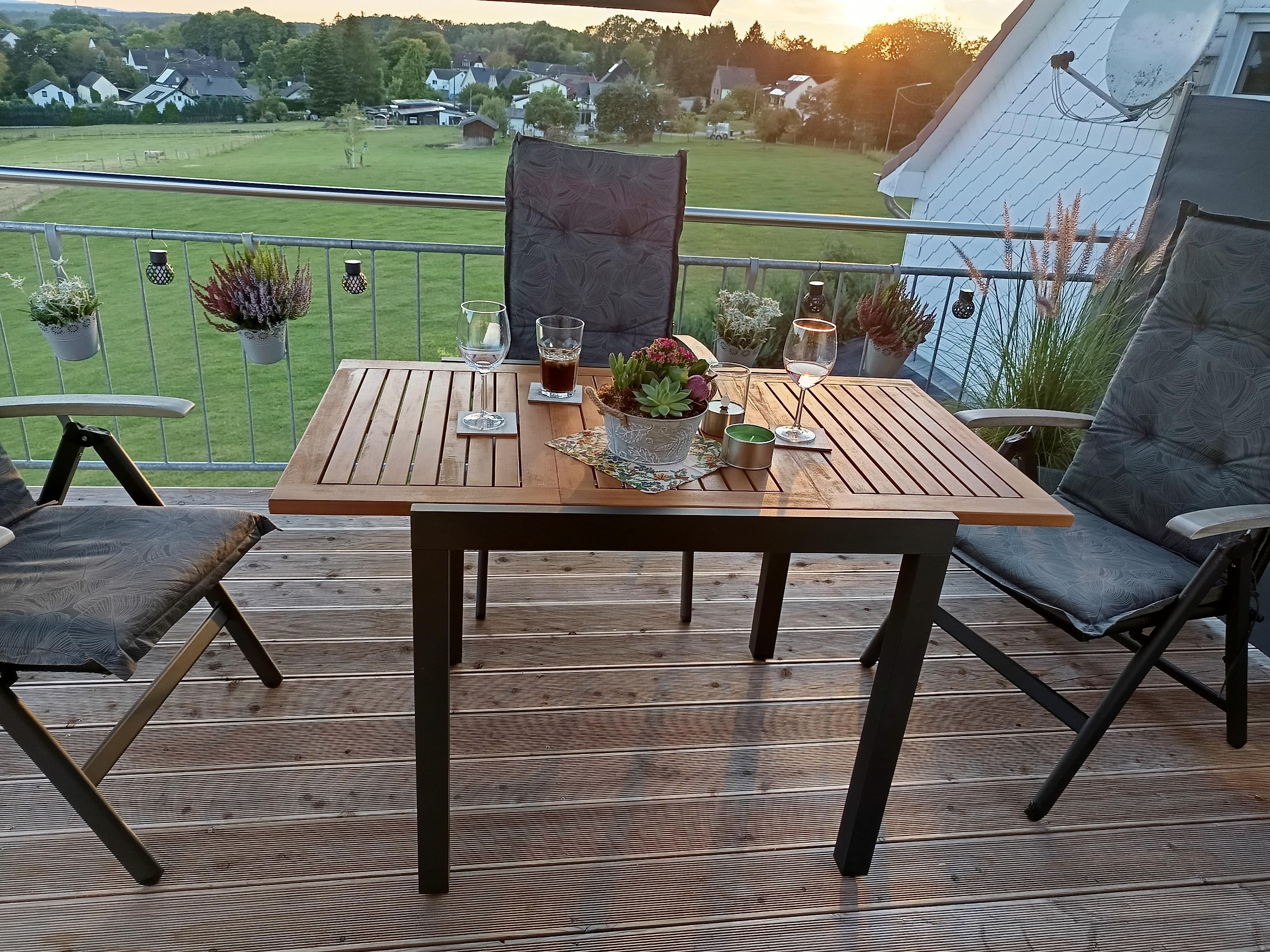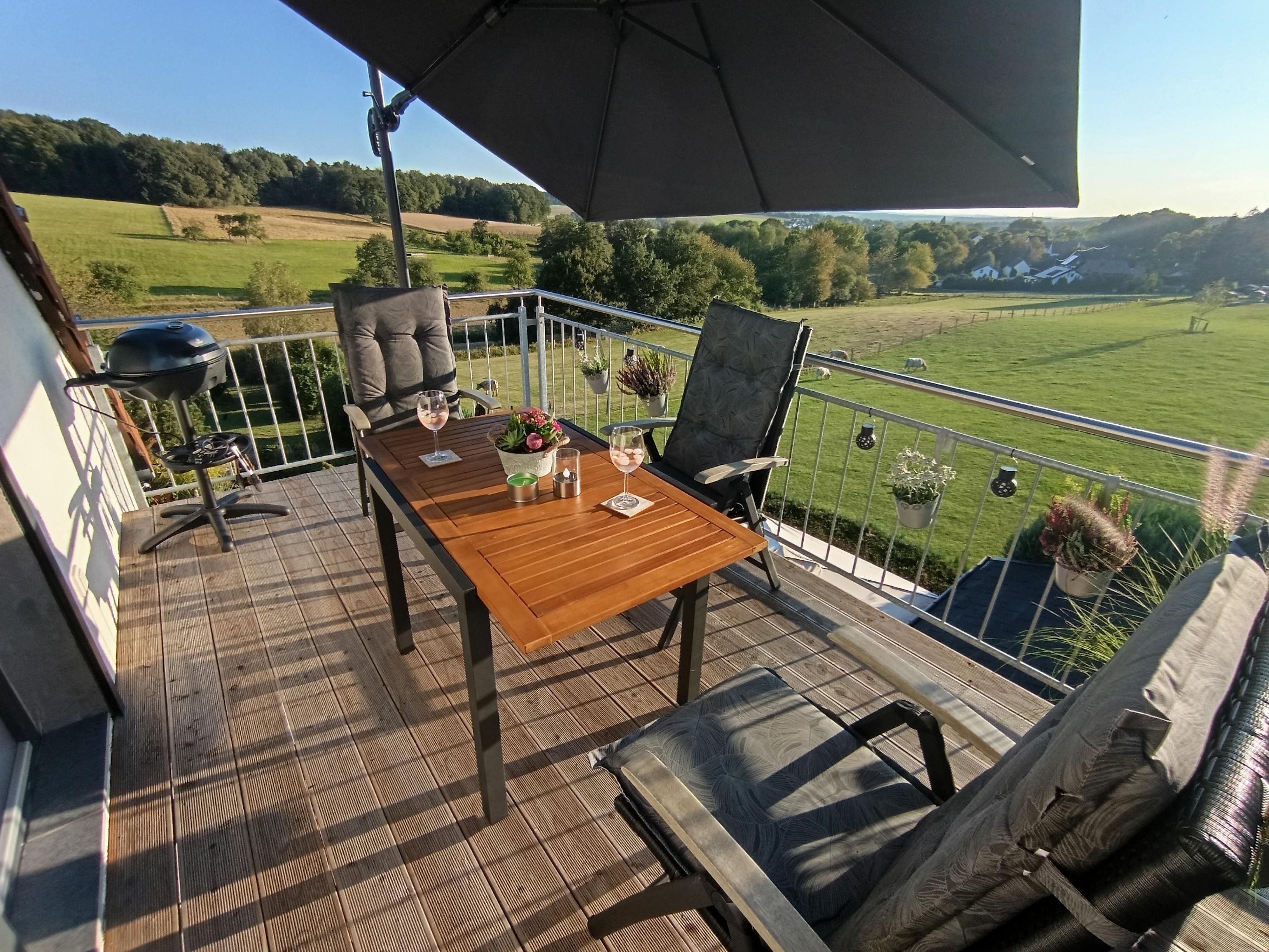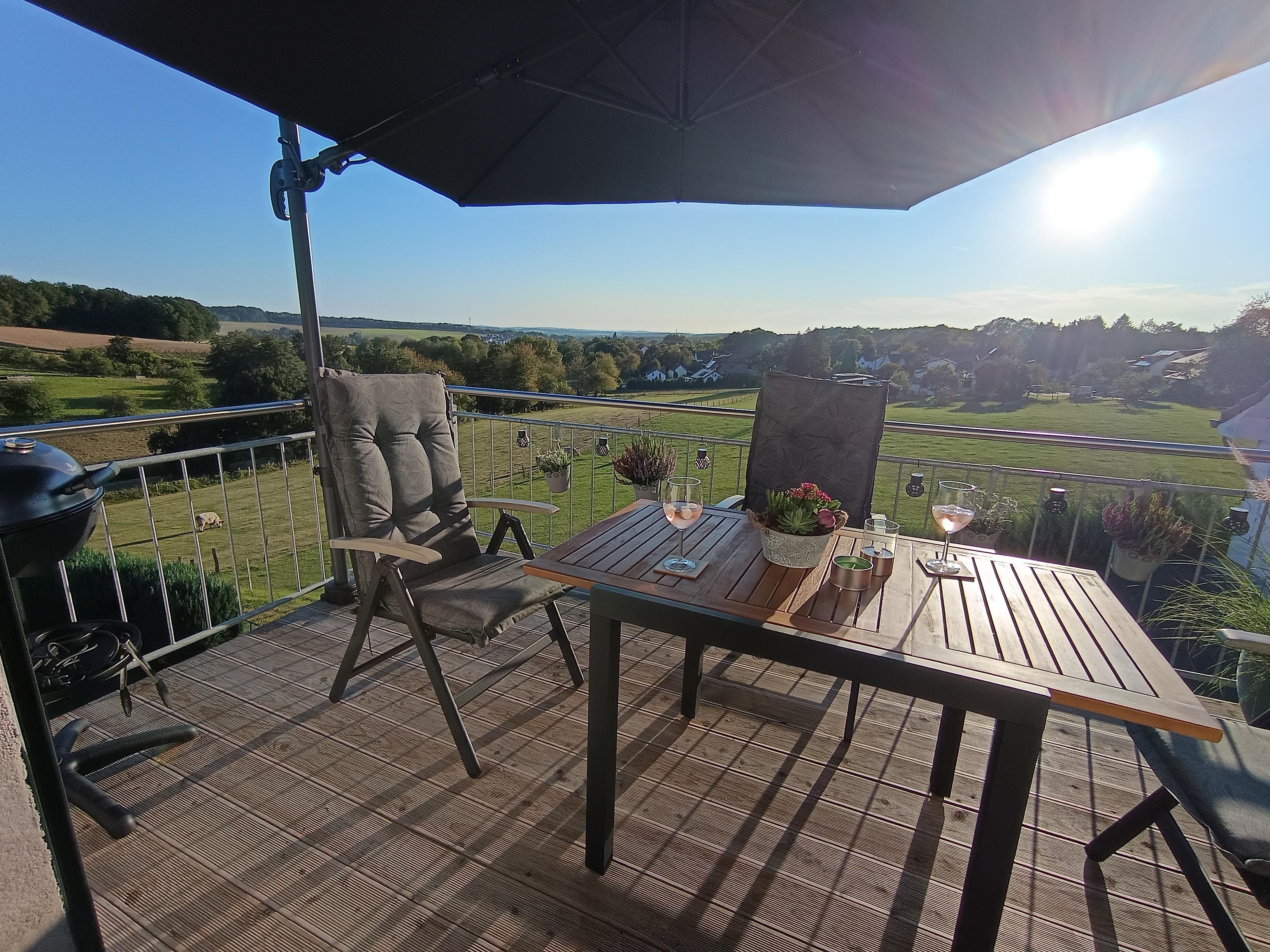 Auf dem eigenen Balkon können Sie die Abendsonne bis zum Untergang genießen, denn als letztes Haus im Ort Mammelzen bietet die Aussicht einen unverbauten Blick über den Westerwald. Ein Grill und bequeme Gartenmöbel stehen zur Verfügung.