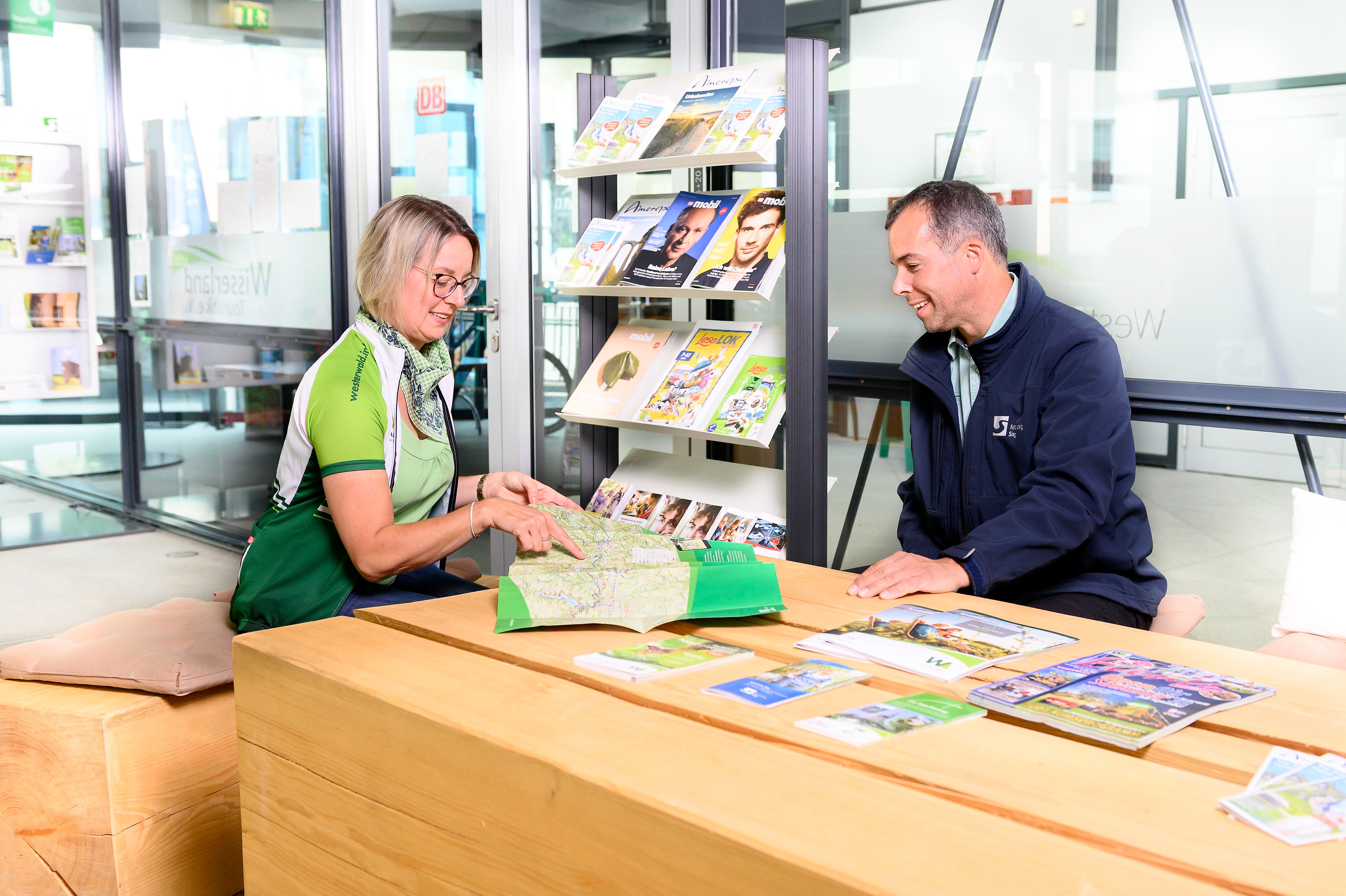 Als regionaler Tourismusverband präsentieren wir gerne unsere Gastgeber und Ausflugsziele in der Stadt Wissen sowie in den Ortsgemeinden Birken-Honigsessen, Hövels, Katzwinkel (Sieg), Mittelhof und Selbach (Sieg). Im modernen RegioBahnhof (ausgezeichneter Wanderbahnhof) sind wir als Tourist-Information zusammen mit dem Reisecenter der Westerwaldbahn (DB-Agentur, Fahrkarten, Ameropa-Reisen und mehr) für alle Anliegen rund um den Urlaub da.