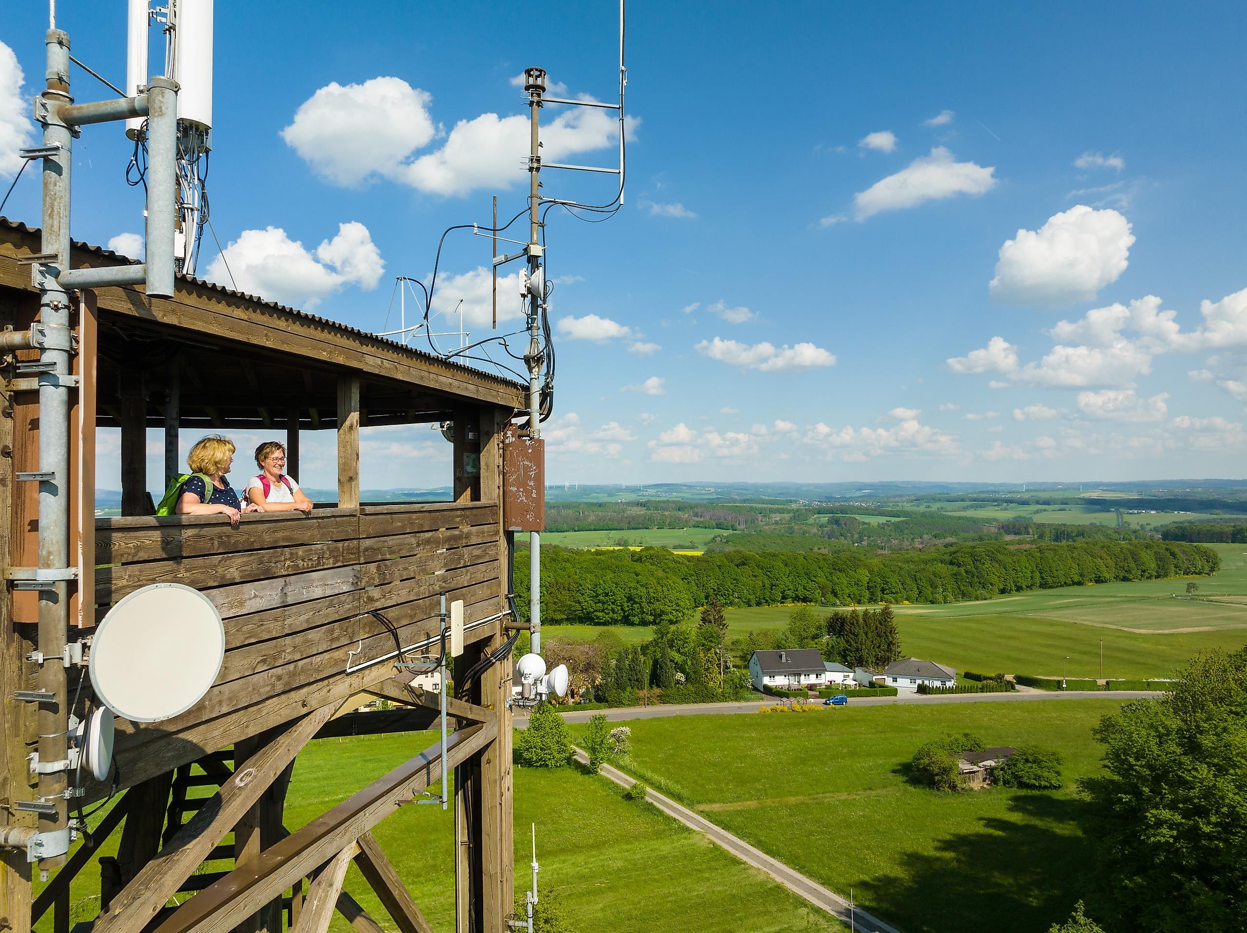From the station in Marienthal with its namesake monastery, the WesterwaldSteig takes you via the Way of the Cross. Through an extensive forest area, you reach the forest edge after just under 2 kilometers and look to the right at the small village of Hilgenroth. On the left is Obererbach, where you can later start your return journey. Along meadow paths past forest edges, you reach the next forest section, which soon gives you a clear view of the Raiffeisen Tower. From here you have a magnificent view over the Bergisches Land, the Siebengebirge, and the Altenkirchen area far into the Westerwald. From the Raiffeisen Tower, you walk back along the WesterwaldSteig to the junction where a connecting path leads you to Obererbach station.