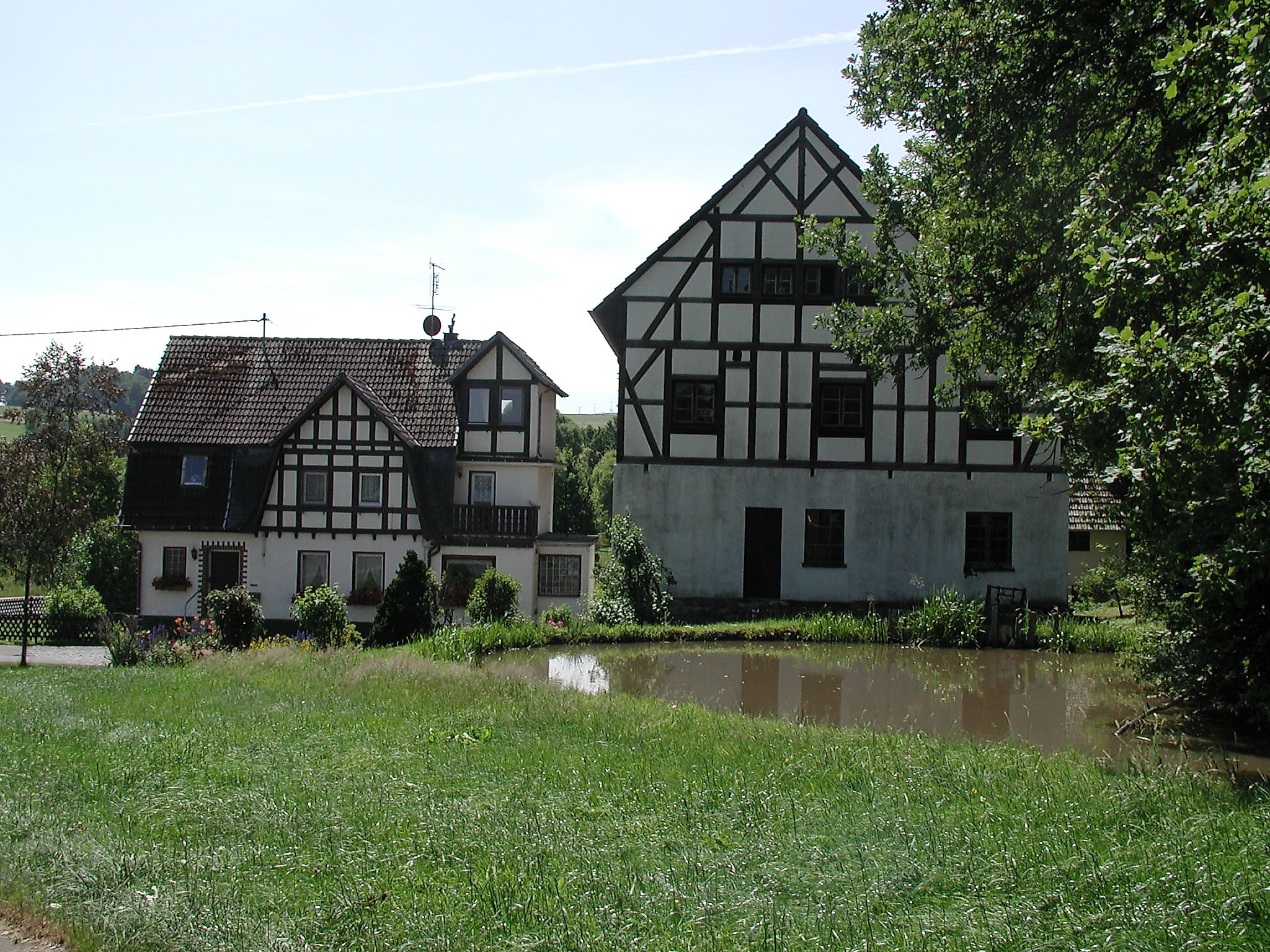 Passing the old town hall, I reach a great view of the Upper Westerwald just beyond the town. Shortly after, I get a view of the Mehrbach valley and the Asbacher Land beyond it.I get to know a gorge valley near Rettersen and the swamp forest directly by the Mehrbach. In Kraam, a short side path leads me to the still preserved old Kraamer Mill with its mill pond and small millrace. The former mill in Forstmehren is also shown, and via QR codes, I can view many pieces of information as well as old pictures of both locations.