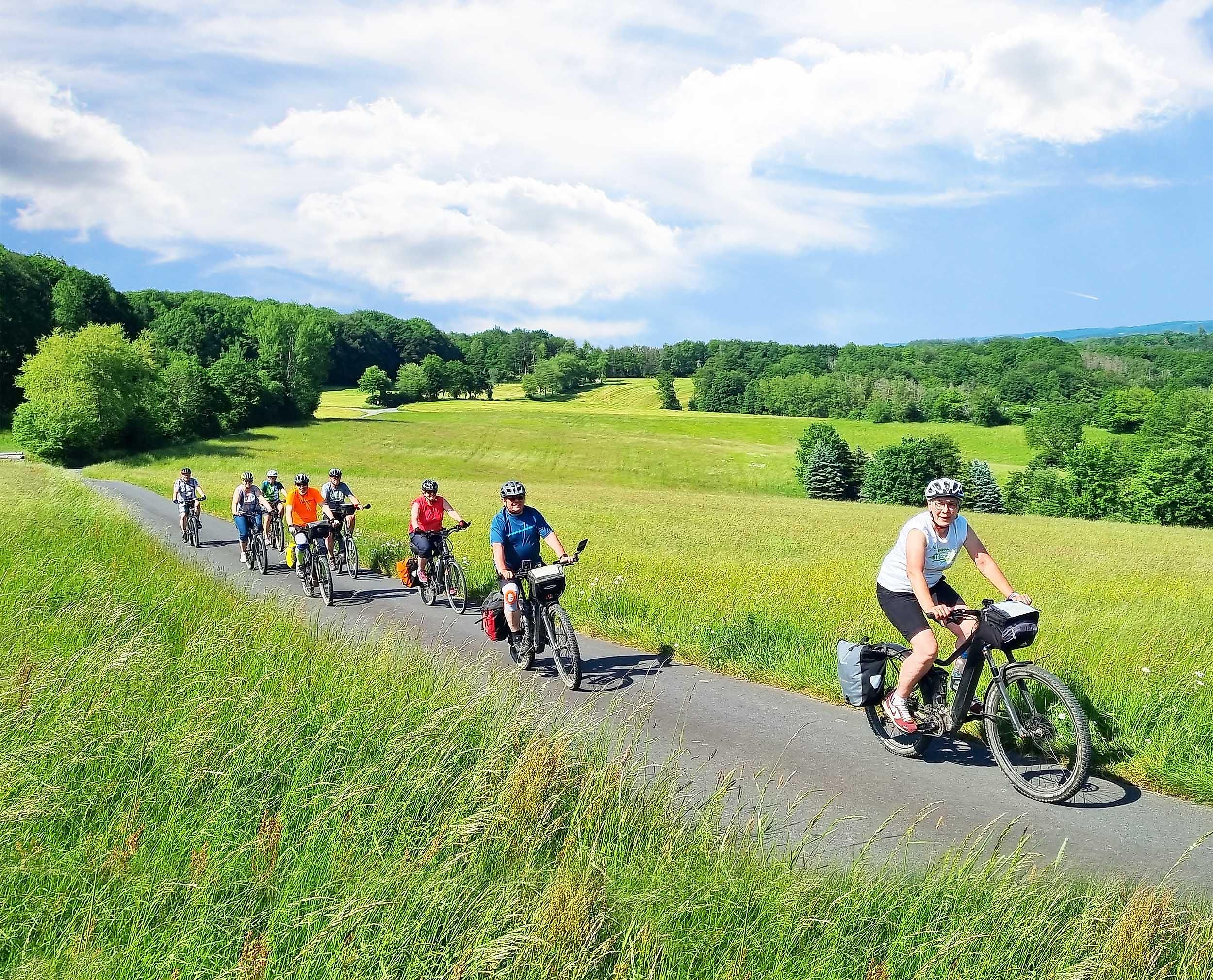 Drie dagen begeleide fietservaringen in het WesterwaldFietservaring Westerwald 2026 - Met nieuwe routes en nieuw hotelWie graag met de E-bike in de frisse lucht onderweg is, graag in een kleine groep fietst, geen "hoogtemeter-jager" is en naast een mooi landschap ook leuke mensen wil leren kennen, voor diegene is het driedaagse aanbod van de begeleide meerdaagse fietstocht in het Westerwald precies goed.Ook wie zich in het Westerwald al goed kent, zal verrast zijn door de nieuwe inzichten bij de zorgvuldig geselecteerde route. De deelnemers fietsen met de eigen of gehuurde elektrische fiets (Pedelec) door een schilderachtig landschap met mooie vergezichten en uitzichten.Een gecertificeerde natuur- en landschapsgids of fietsgids begeleidt de tour langs nieuw geselecteerde routes. Van hem of haar krijg je interessante informatie over het landschap en de cultuur en andere bijzonderheden langs de route. Er is ook voldoende tijd voor korte fotostops en er worden verschillende eetgelegenheden aangeboden om voor eigen kosten te verfrissen en te versterken.De route voert over fietspaden en wandelpaden, verharde asfaltwegen en zijstraten. Enkele korte trajecten kunnen ook onverhard zijn (gravel, gras). Autosnelwegen en drukke wegen worden vermeden of slechts kort gekruist.Voor de overnachtingen is hotel “Gasthof Koch” in Daaden geselecteerd. Voor de eerste avond is een diner in de prijs inbegrepen en voor de tweede dag een tafelreservering in het hotelrestaurant. In een gezellige setting kunnen op de twee avonden de ervaringen en indrukken van de dag weer in de groep worden uitgewisseld.Data 2026:In de zomer van 2026 zijn er zes data beschikbaar. Vroeg boeken wordt aangeraden, aangezien enkele data al bijna volgeboekt zijn.Alle benodigde informatie en de boekingsmogelijkheid vind je op www.Fietservaring-Westerwald.nl.