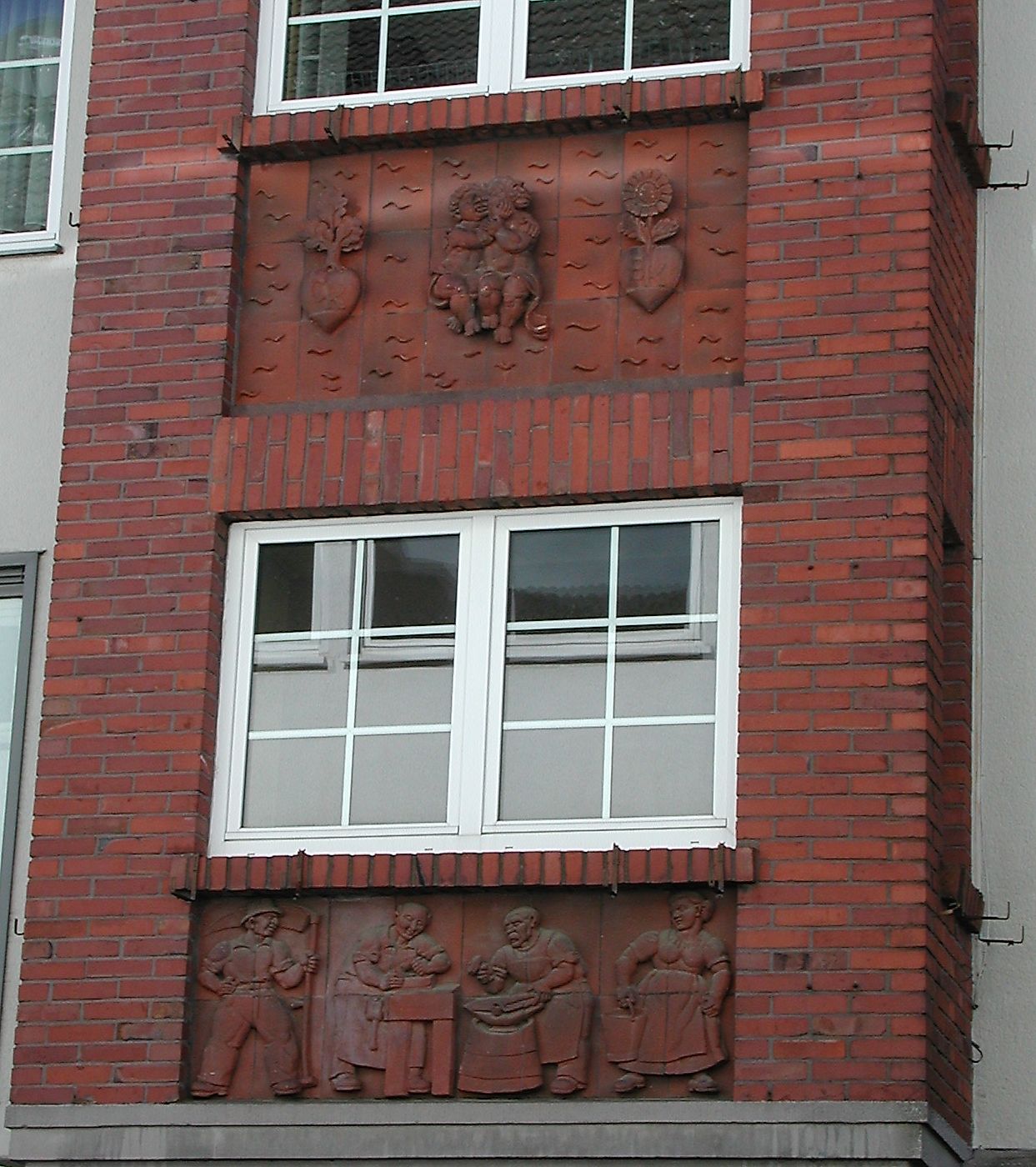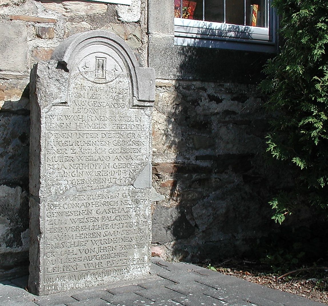 Als u de kerk links passeert, ziet u voor de protestantse bibliotheek een oude grafsteen, die werd gevonden bij opgravingen rond de kerk. Een brede doorgang leidt ons nu terug naar de Wilhelmstraße en we zien de artistiek vormgegeven gevel van de voormalige ijzerwinkel van de familie Kuss.
