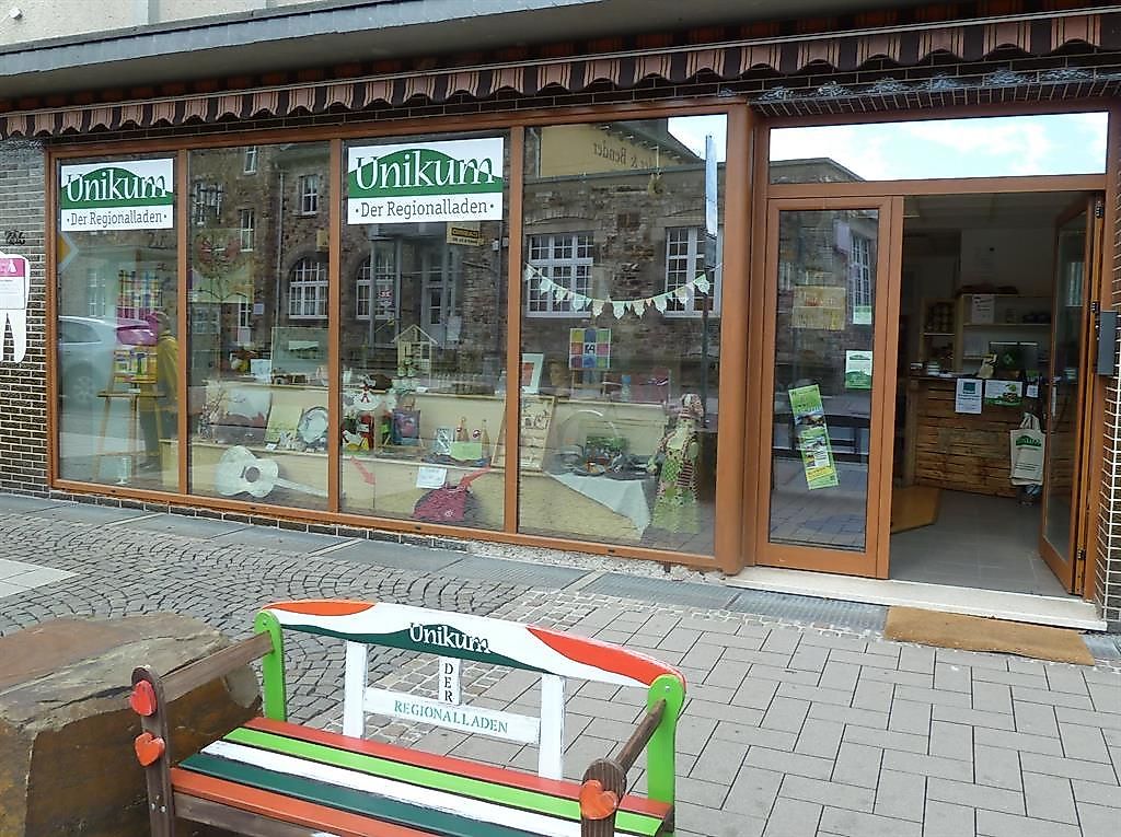 Wat er nog meer in de regio Altenkirchen te koop is, vinden we in de toeristische uitstalling in de UNIKUM streekwinkel, die ook regionale specialiteiten voor ons in petto heeft.