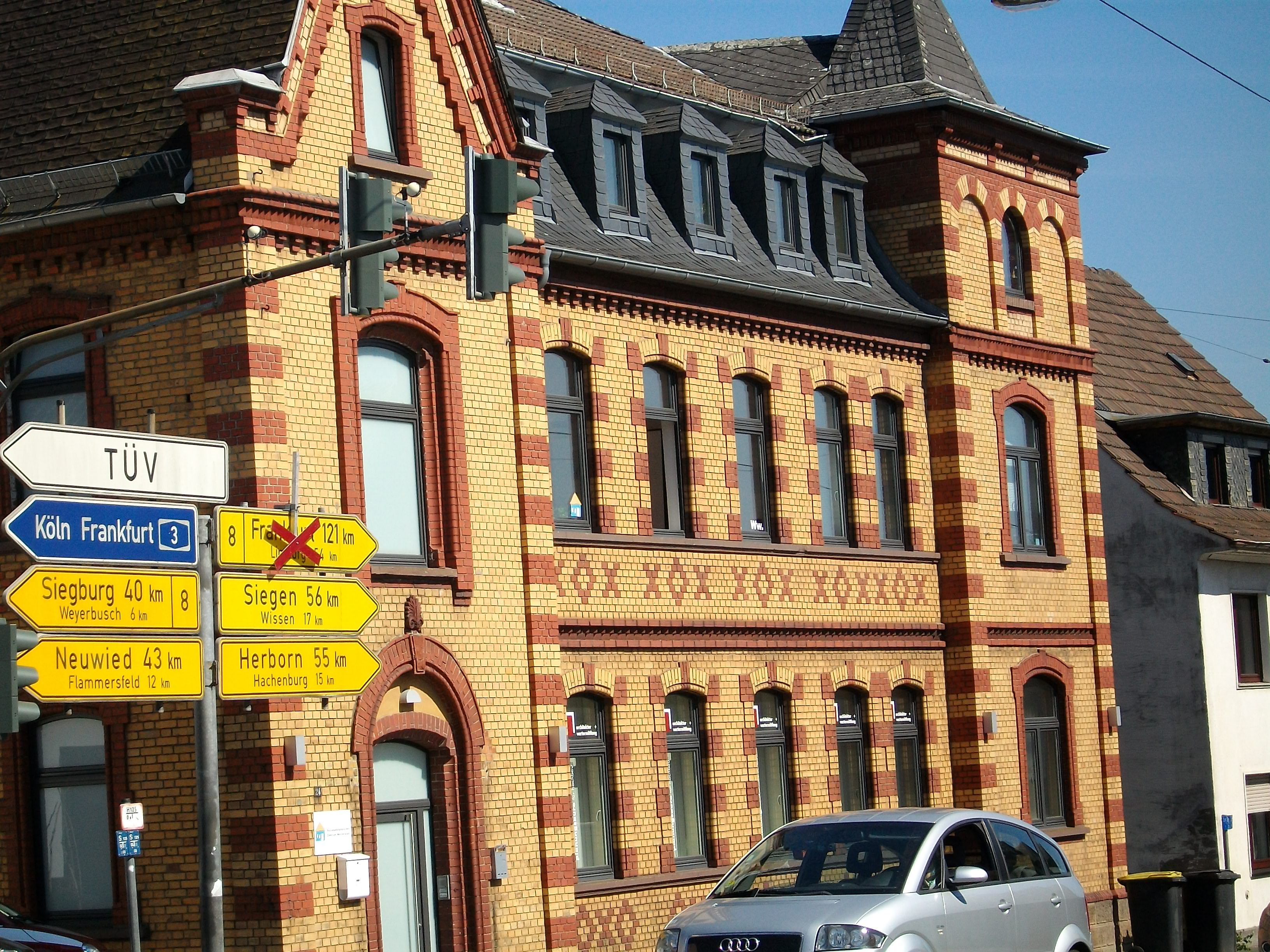 Vanaf het station lopen we via Konrad-Adenauer-Platz en de "Zick-Zack-Weg" omhoog naar de Wiedstraße. Hier gaan we rechtsaf naar het kruispunt met verkeerslichten, waar we "XOX-Haus", genoemd naar het kenmerkende baksteenpatroon, al herkennen. In de vallei achter dit gebouw stond vroeger de oude steenfabriek. De bijbehorende kleiput bevond zich achter de huidige ALDI-supermarkt. Via de Ziegelweg keert de route terug naar de "B8", de Kölner Straße of, in vroegere tijden, de "Huh Stroß", de Hohe Straße. Een oude leger- en handelsroute van Keulen naar Frankfurt am Main en eveneens naar Leipzig, die hier Altenkirchen doorkruist.